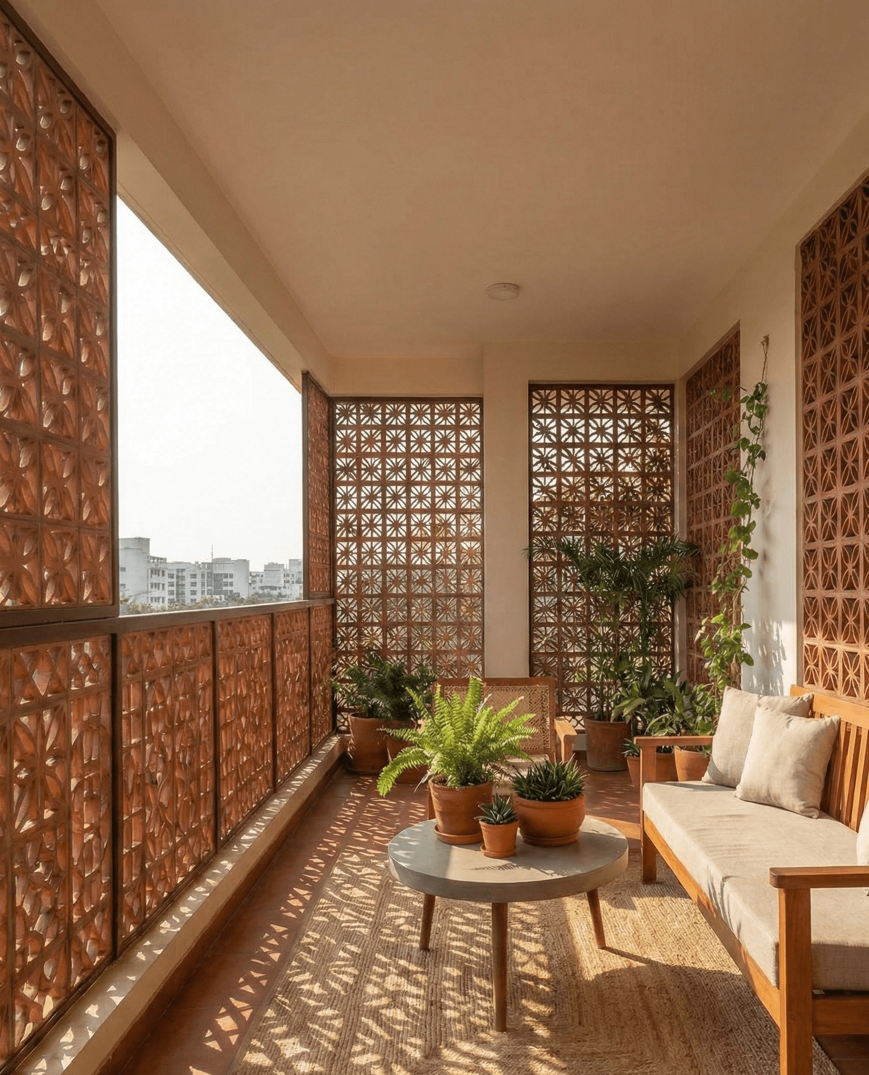 Clayastra jali systems filter daylight, encourage airflow, and maintain privacy without closing spaces. Crafted from 1st Grade terracotta clay and engineered for long-term stability.